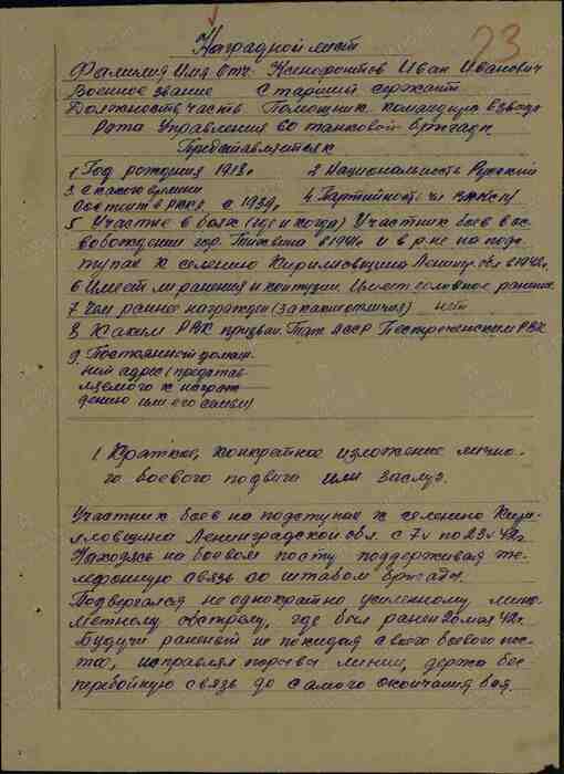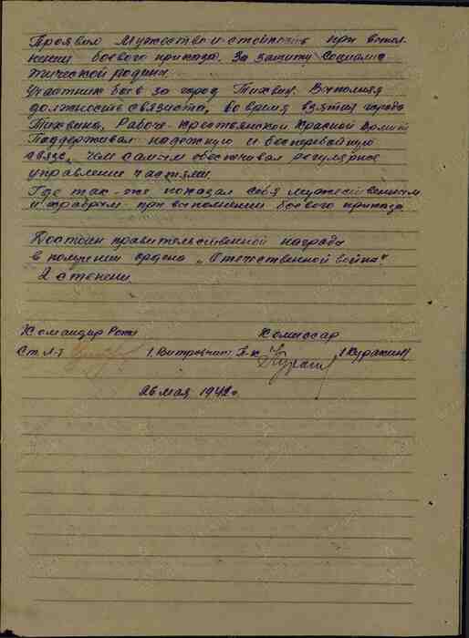 Достоин правительственной награды с получением Ордена Отечественной войны 2 степени.