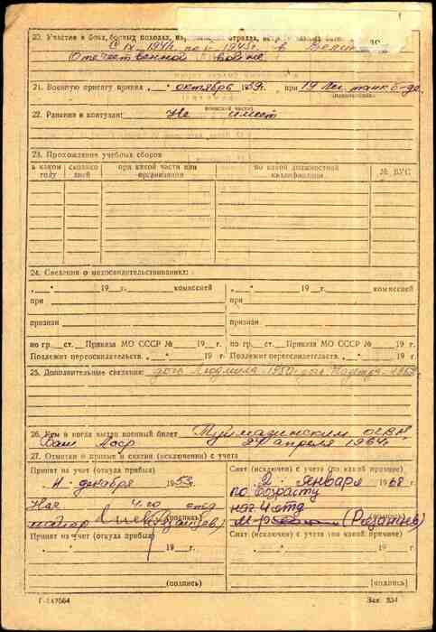 Уроженец (или же проживавший перед призывом): Чкаловская (ныне - Оренбургская) область Абдулинский район село Малый Сурмет