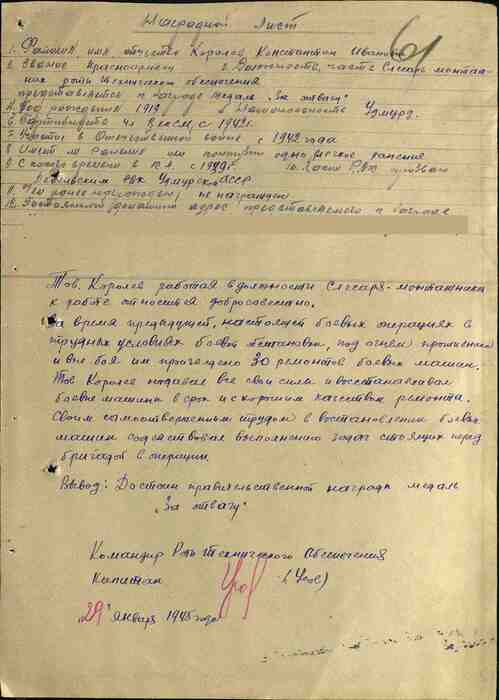 Товарищ Королев отдавал все свои силы и восстанавливал боевые машины в срок и с хорошим качеством ремонта.