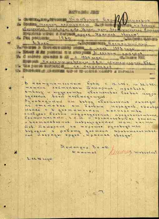 Товарищ Тамаркин за хорошее руководство взводом и работу достоин правительственной награды Ордена Красной Звезды.