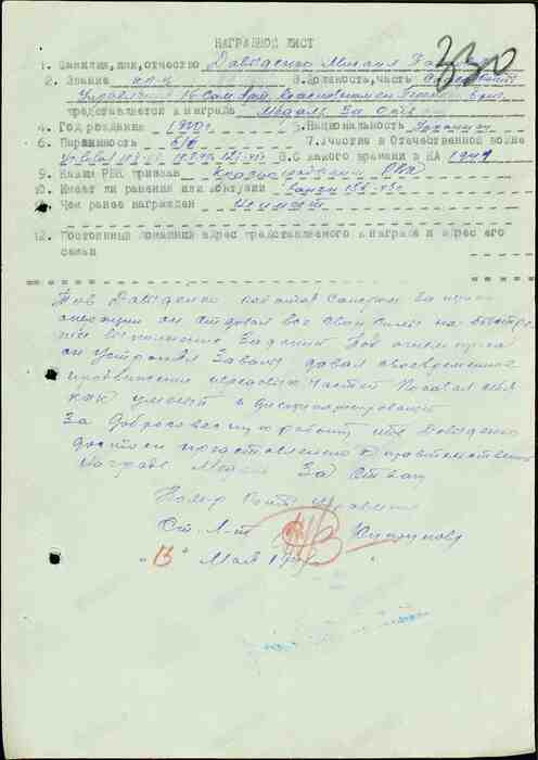 За добросовестную работу товарищ Давыденко достоин предоставления к правительственной награде Медали "За отвагу".