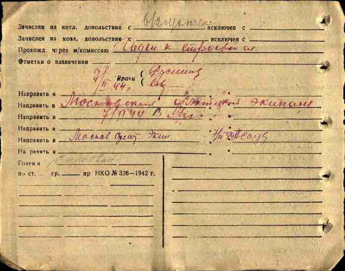 Найдена информация о возможной службе воина в феврале 1944 года в звании красноармейца в составе в/ч п/п 45708, как и в 67 отдельном батальоне войск по охране предприятий и в 15 зап Московского ВО.