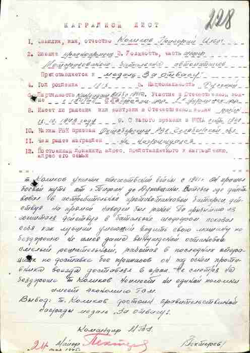 Вывод: товарищ Коликов достоин правительственной награды Медали "За отвагу".
