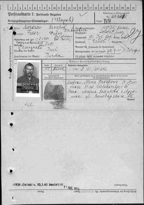 Дата пленения: Не позднее 20.07.1941