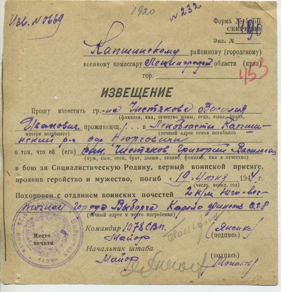 Файл: «Тихвин_Архив_РВК_Похоронки_Чистяков.Г.В»