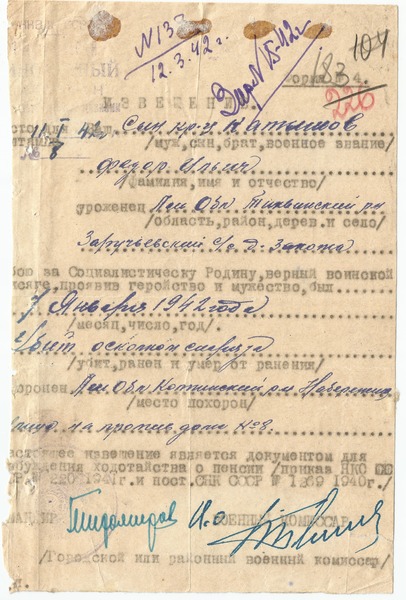Файл: «Тихвин_Архив_РВК_Похоронки_Катышев.Ф.И»