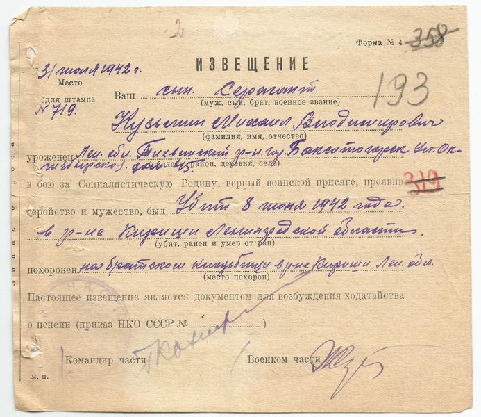 Файл: «Тихвин_Архив_РВК_Похоронки_Кузьмин.М.В_01»