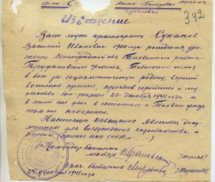 Файл: «Тихвин_Архив_РВК_Похоронки_Суханов.В.И_50863484_Потери»