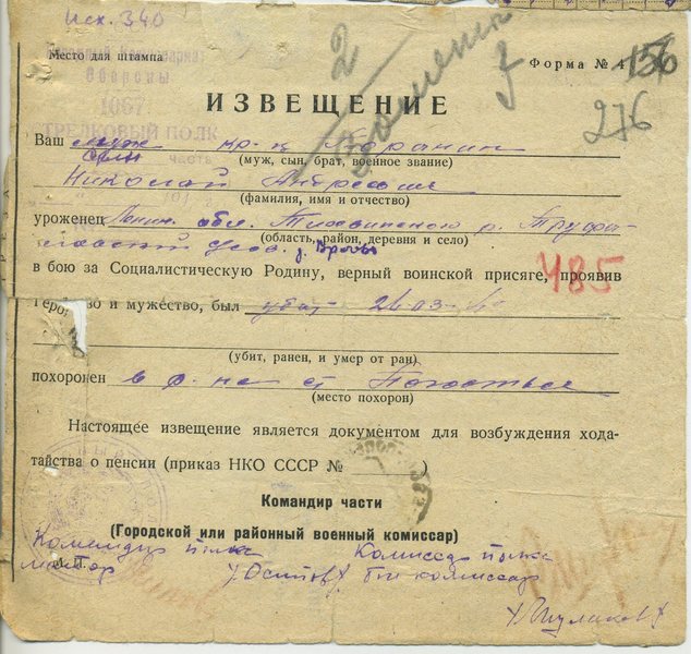 Извещение о гибели воина = похоронка