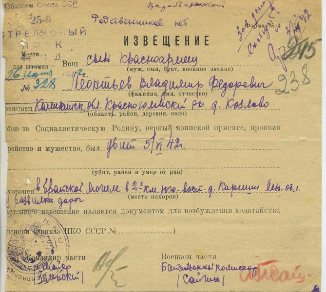 Извещение о гибели воина = похоронка