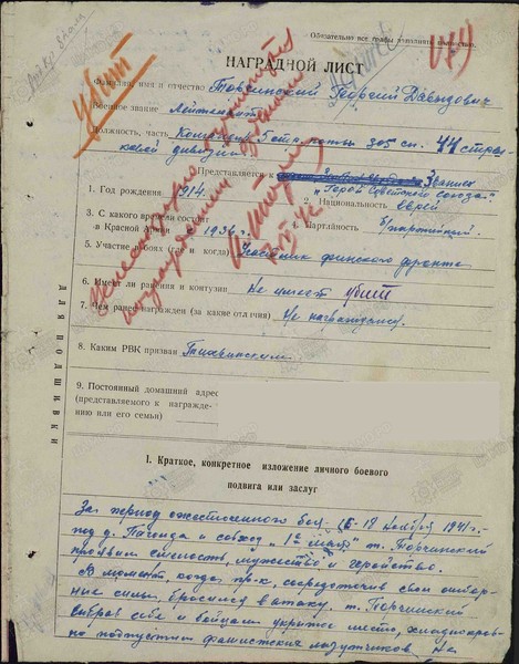 Торчинский Григорий Давидович (Георгий, Давыдович-адм (пост 1285 Герои 1914 170/7 лейтенант убит представление к званию Герой Советского Союза п 150068243 ЖБД_44.СД_23.11.1941 06.12.1941 305 СП, 44 СД 50864553 75231806 9126154 33128372 ВПП нет варианты нет