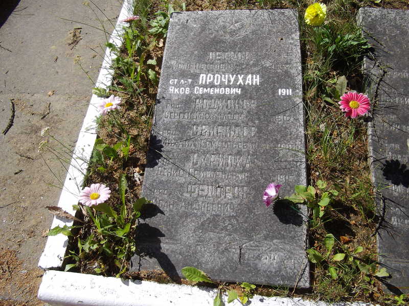 Действительно, на плите запись «Прочухин Яков Семенович», но во всех доках от ЦАМО, в том числе и от ТХВ РВК, он «Прочухан Яков Семенович»