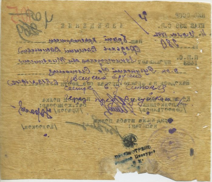 Из донесения послевоенного периода Петриневский РВК, Вологодская обл. от 09.01.1947