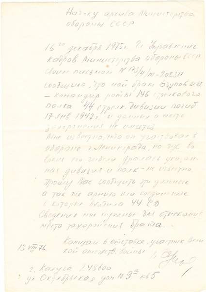 Файл: «Тихвин_Звезда_Езупов.И.И_13_Ответ_ЦАМО_05.10.1976»