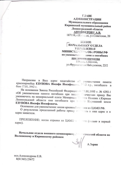 Файл: «Тихвин_Звезда_Езупов.И.И_17_Справка_ЦАМО_26.11.2010»
