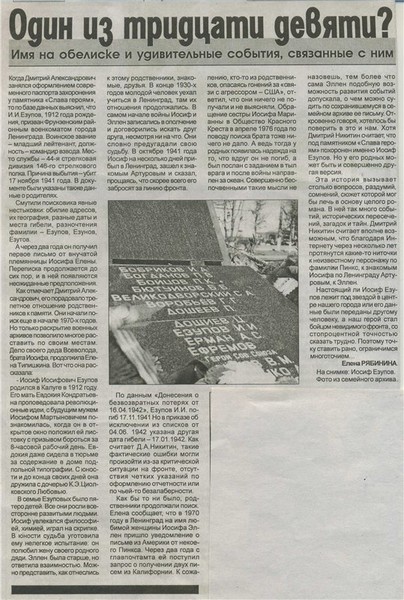 Вот столько вопросов, раздумий, сомнений вызывает эта удивительная история, сюжет которой мог бы лечь в основу литературного произведения. В ней так много событий, исторических пересечений, загадок и тайн. Как считает поисковик Д.А. Никитин, вполне возможно, что благодаря Интернету, через несколько лет протянутся какие-то ниточки к неизвестному персонажу по фамилии Пинкс, к знакомым Иосифа по Ленинграду Артуровым, к Эллен. Настоящий ли Иосиф Езупов лежит под звездой в центре нашего города, или его данные были переданы другому человеку, а наш герой стал бойцом невидимого фронта – со стопроцентной точностью сказать трудно…»