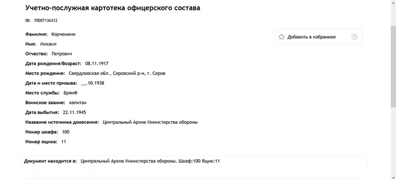 Корчемкин Михаил Петрович (см. Карчемкин 08.11.1917 ЖИВ мл. политрук 120 ТП, 60 ТД п 10275444 ЖБД_60.ТД п 24631117 п 19006428 п 26246754 п 45835378 п 1524103542