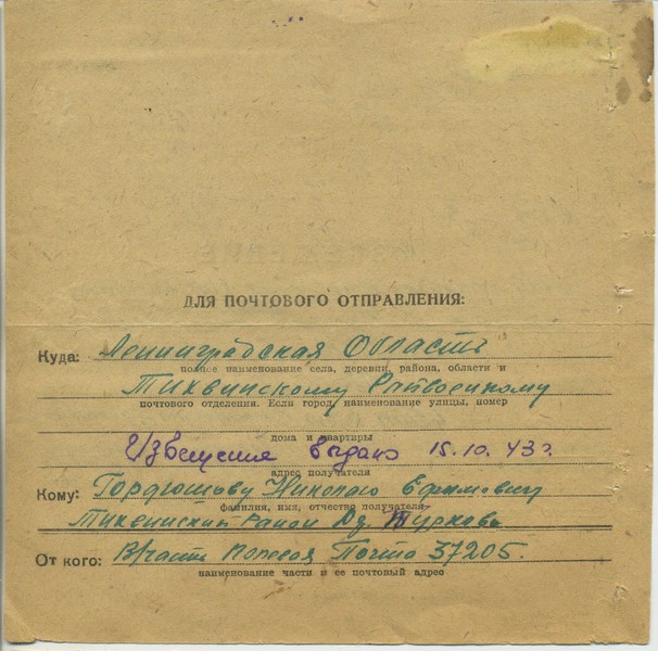 Из извещения боевых частей ВК Ленинградской обл., Отдел по г. Бокситогорск, Тихвин, Бокситогорскому и Тихвинскому р-нам