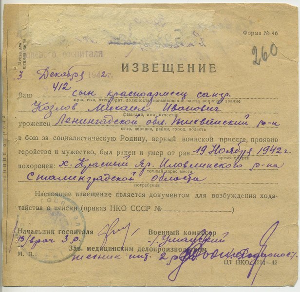 Файл: «Тихвин_Архив_РВК_Похоронки_Козлов.М.И_2»