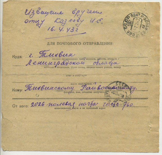 Файл: «Тихвин_Архив_РВК_Похоронки_Козлов.М.И_1»