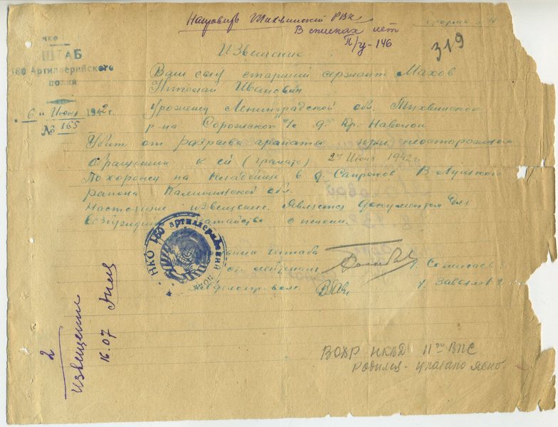 Файл: «Тихвин_Архив_РВК_Похоронки_Махов.Н.И_2»