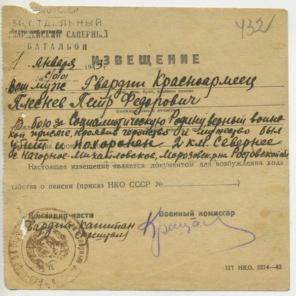 Извещение о гибели воина = похоронка