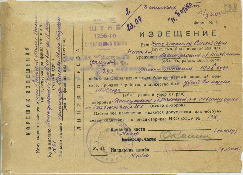 Файл: «Тихвин_Архив_РВК_Похоронки_Смехов.И.П_1»