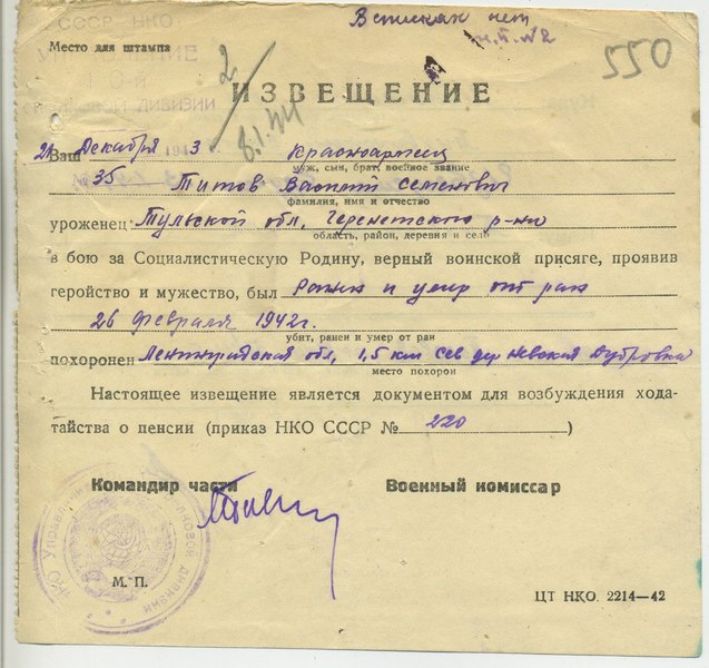 Извещение о гибели воина = похоронка