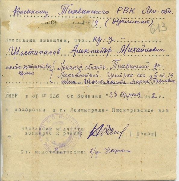 Файл: «Тихвин_Архив_РВК_Похоронки_Шестипалов.А.М_1»