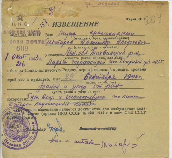 Файл: «Тихвин_Архив_РВК_Похоронки_Штарев.А.А_1»