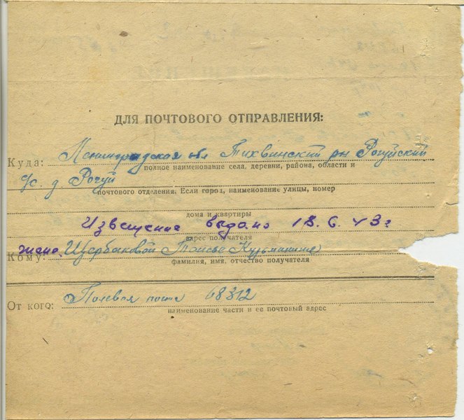 Из извещения боевых частей ВК Ленинградской обл., Отдел по г. Бокситогорск, Тихвин, Бокситогорскому и Тихвинскому р-нам