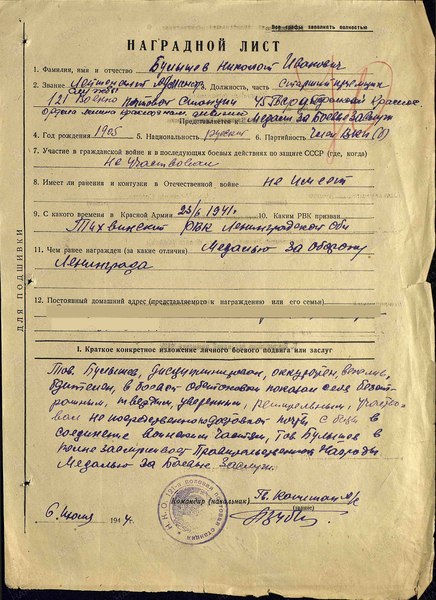 Тов. Булышев вполне заслуживает правительственной награды - МЕДАЛИ «ЗА БОЕВЫЕ ЗАСЛУГИ
