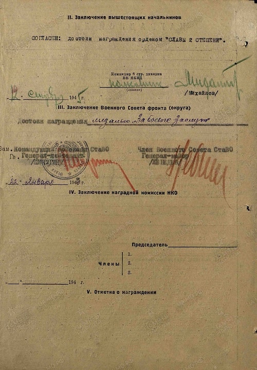 Заслуживает награждения Орденом Славы II степени.