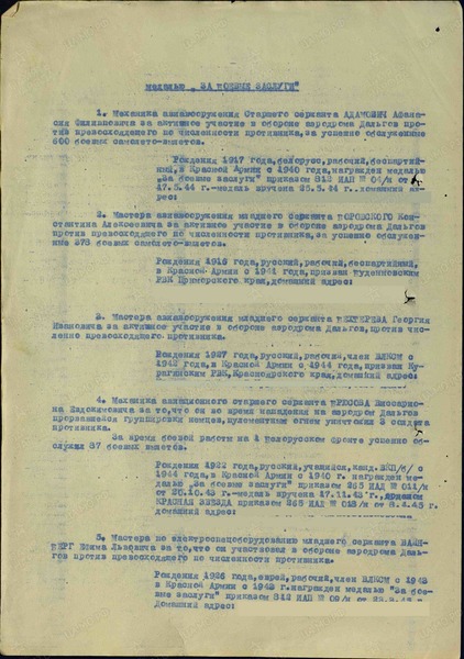 «Мастера авиавооружения, младшего сержанта Боровского Константина Алексеевича за активное участие в обороне аэродрома Дальгов против превосходящего по численности противника, за успешно обслуженные 378 боевых самолето-вылетов»