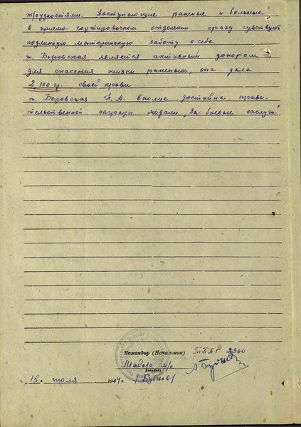 «Ефрейтор Боровская Нина Алексеевна является лучшей санитаркой приемно-сортировочного отделения госпиталя.