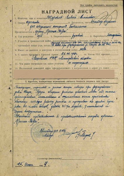Справка: воин «Журавлев Алексей Михайлович 1915» сержант, ком. отделения, награждён ОРДЕНОМ КРАСНОЙ ЗВЕЗДЫ