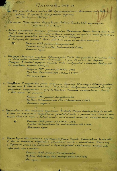 Прибыл 05.08.1941 из Пашский РВК, Ленинградская обл.