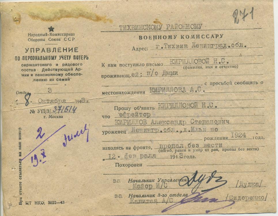 Файл: «Тихвин_Архив_РВК_Похоронки_Кириллов.А.С_01»