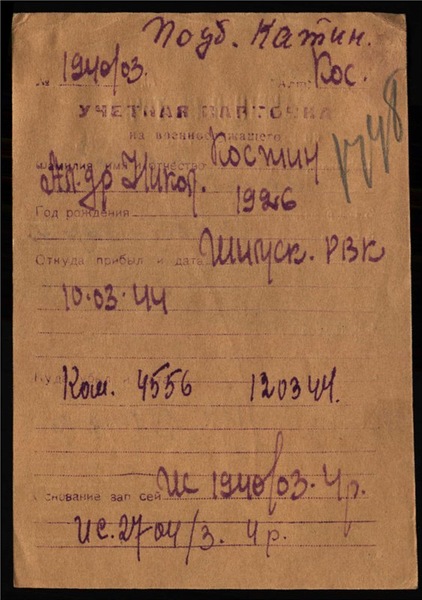 ВПП ID: 101051372; (Катин) Картотека ПРБ 36 ЗСД от 10.03.1944