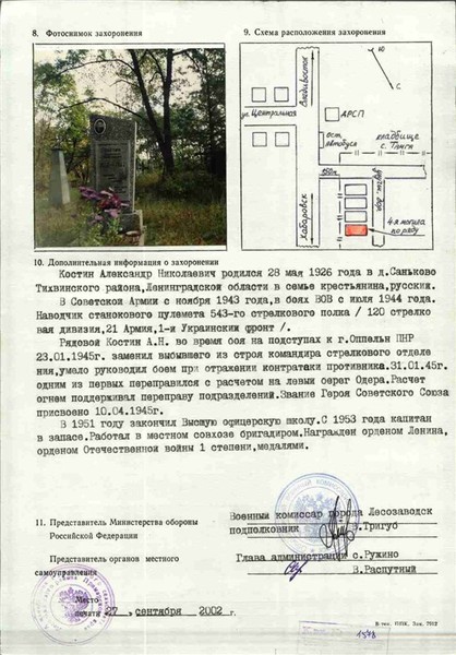 Именная тема посвящена воину «Костин Александр Николаевич (Катин 28.05.1926», Герою Советского Союза