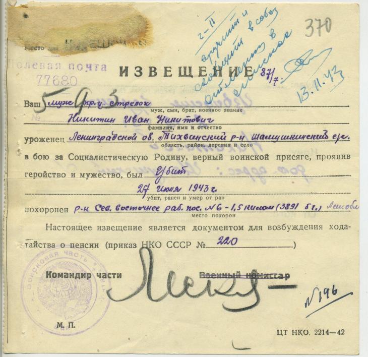 Файл: «Тихвин_Архив_РВК_Похоронки_Никитин.И.Н_01»