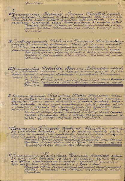 «Сержанта Никитина Федора Федоровича – ездового 3-го стрелкового батальона.