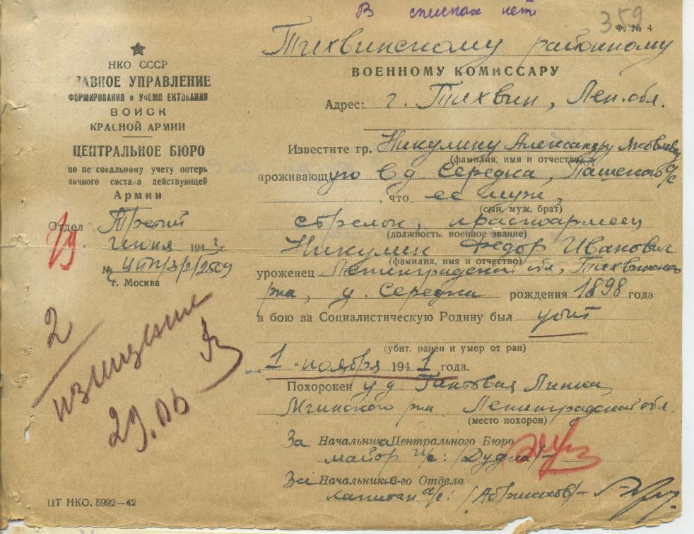 Файл: «Тихвин_Архив_РВК_Похоронки_Никулин.Ф.И_01»