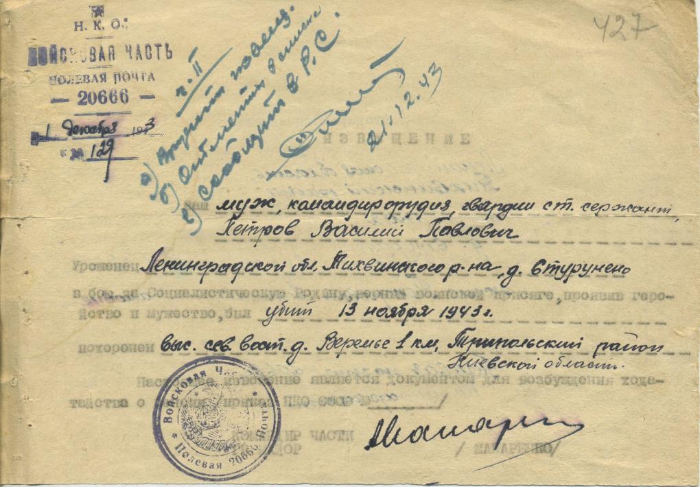 Извещение о гибели воина = похоронка