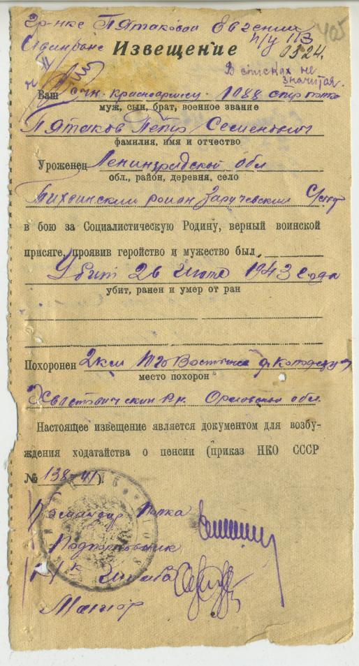 Файл: «Тихвин_Архив_РВК_Похоронки_Пятаков.П.С_02»