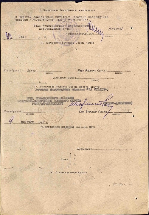 Вывод: за участие в Великой Отечественной войне достоин награждения Орденом Отечественной войны 2 степени.