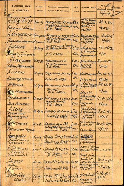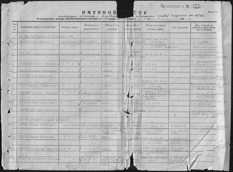 ОБД ID: 50860835; Донесения о безвозвратных потерях от 09.02.1942; источник: полевое упр. 4 Арм.; стр. 2/12
