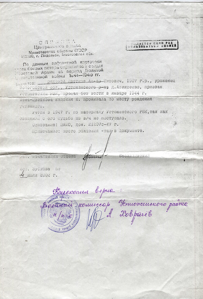 Файл: «Тихвин_Земляк_Цветков.А.Т_Ответ_ЦАМО_04.07.2002»