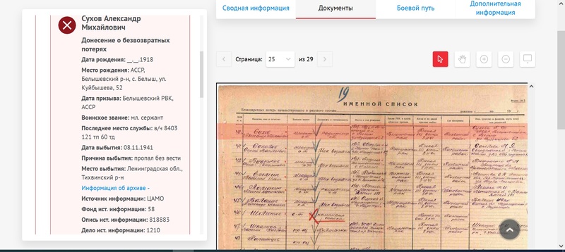 Другие ссылки на найденные документы о судьбе воина: