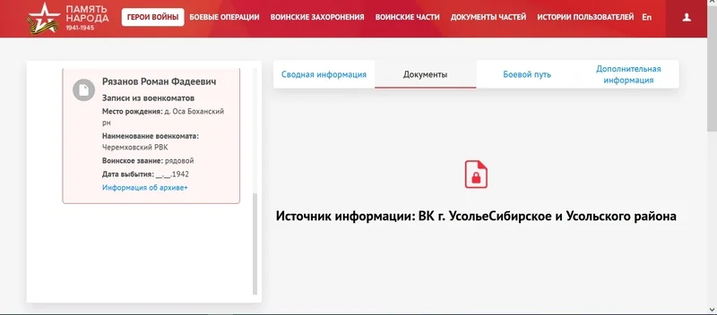 Другие ссылки на найденные документы о судьбе воина: